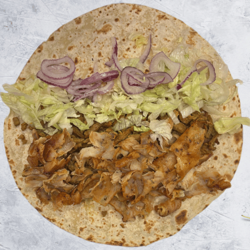 Turkse wrap met kip döner kebab of lamsshoarma en is met friet belegd
